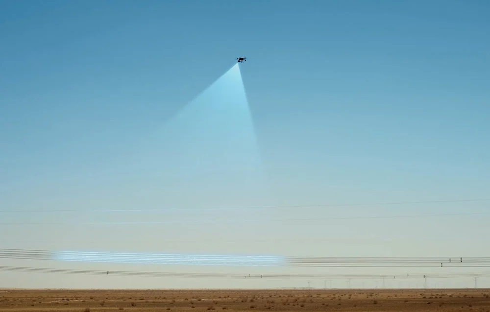 Obrotowy LiDAR 0,5–100 m (standard), 35 m (linie energetyczne); FOV: 360° (H), 58° (V); 520 000 pkt/s; 905 nm; Klasa 1 – bezpieczny